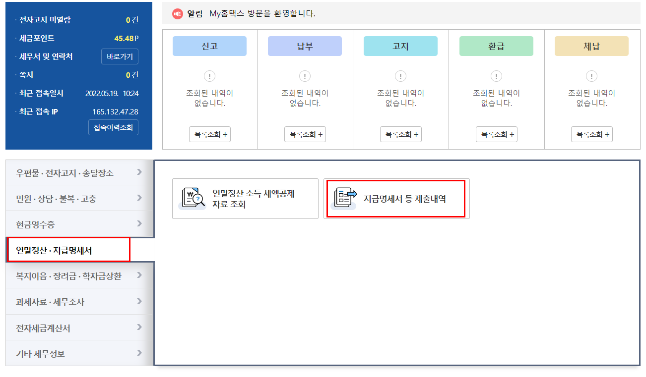 2022년도 소득의 경우 2023년 5월부터 조회가 가능합니다. 아직 22년도 소득조회는 불가능합니다.