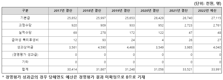 임원 평균연봉은 2021년도 기준 1억 1,758만원 입니다.