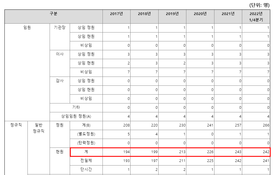 21년도 기준으로 30명 신규채용하였습니다. 22년도 상반기에는 총 1명을 채용하였습니다.