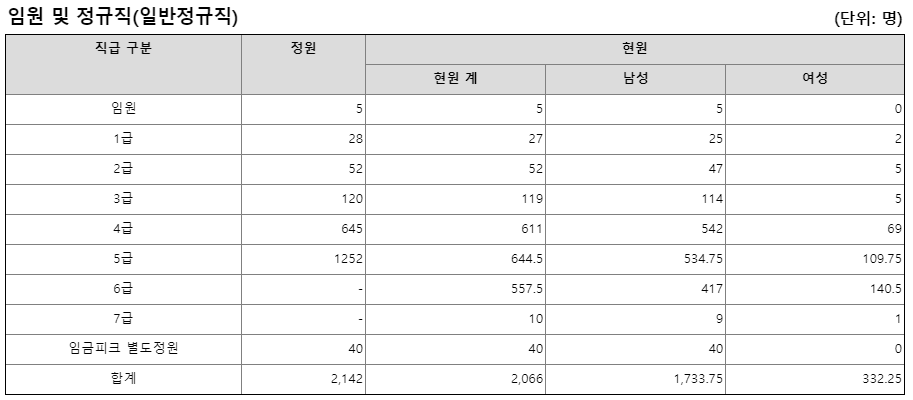 | 직원수 | 2,056명 | 2,090명 | 2,061명 |