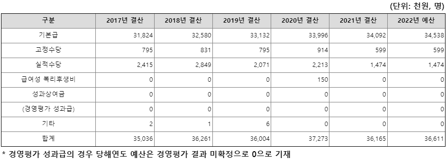 추가적으로 초봉은 성과상여금, 경영평가 성과급이 반영되어 있지 않아 다소 낮아 보입니다.
