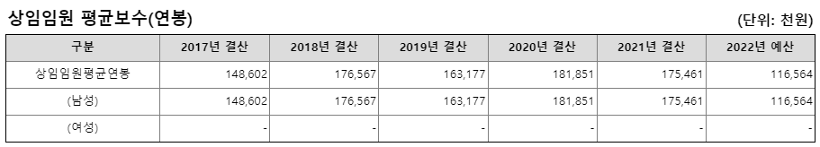 임원 평균연봉은 2021년도 기준 1억 7,546만원 입니다.