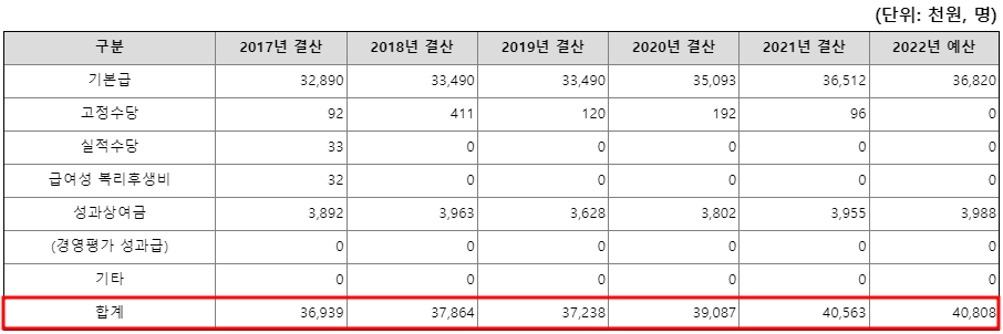 추가적으로 초봉은 성과상여금, 경영평가 성과급이 반영되어 있지 않아 다소 낮아 보입니다.
