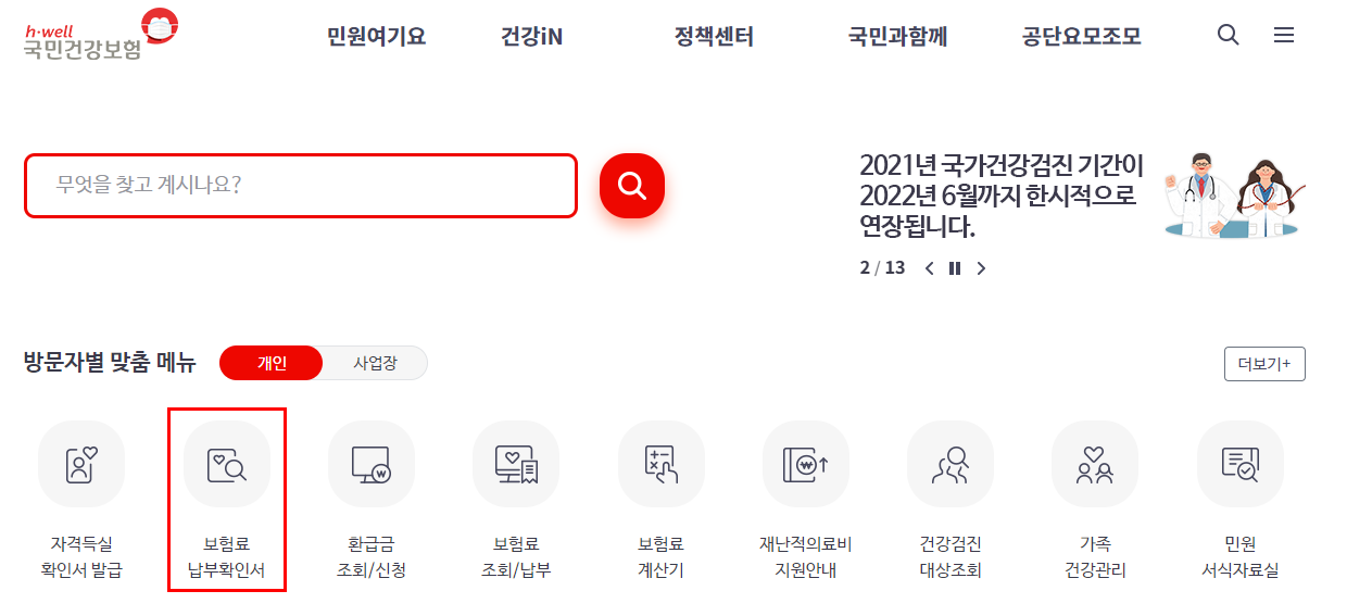 ① 건강보험공단 홈페이지 접속 → 보험료 납부확인서