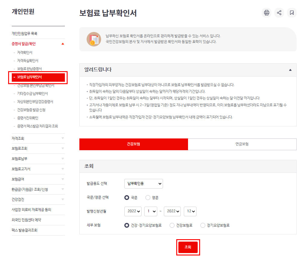 건강보험 납부확인서 발급방법 : 인터넷에서 1분만에