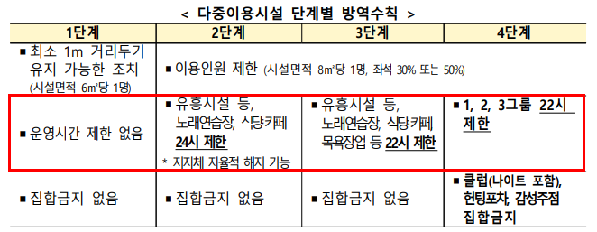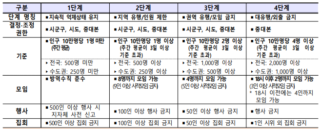 1~3단계까지는 지역별로 조정가능하며 지역의 자율과 책임을 강화합니다.