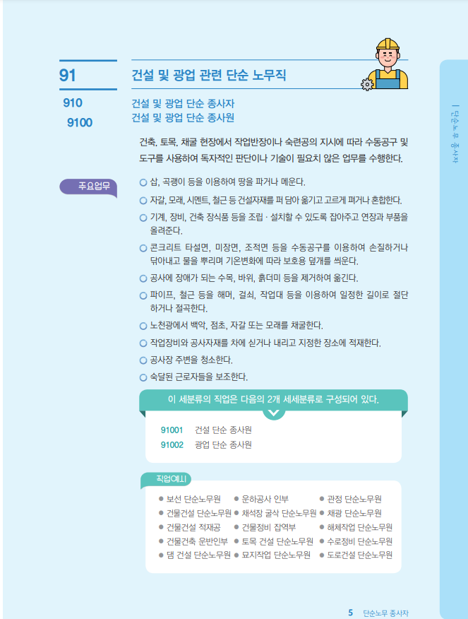 91 건설 및 광업 관련 단순 노무직