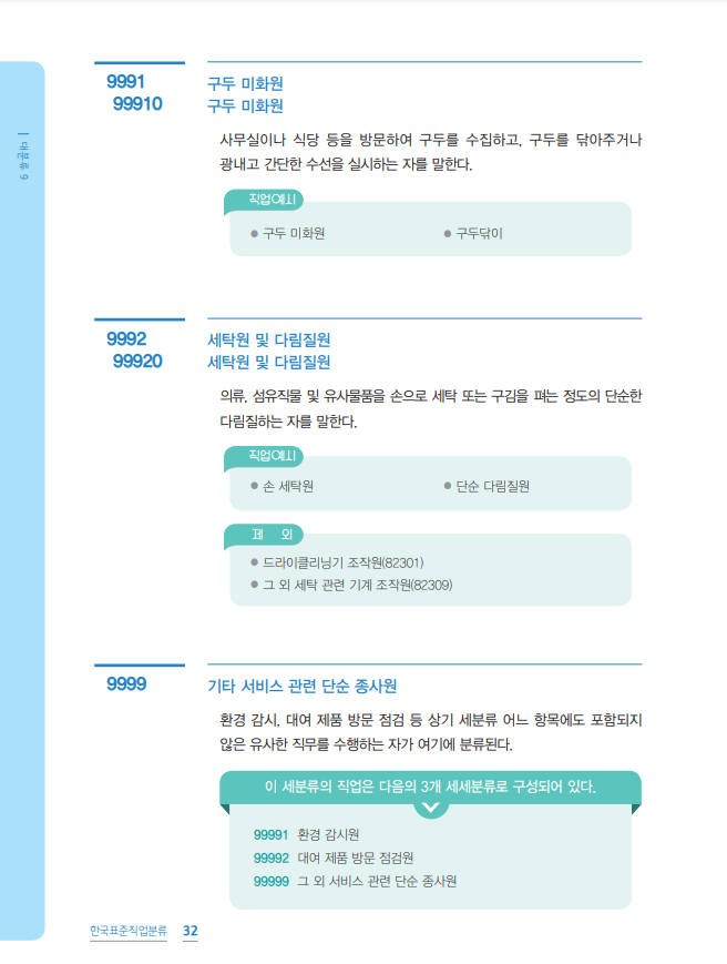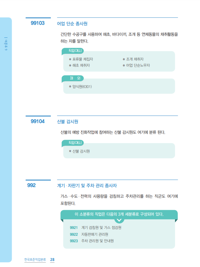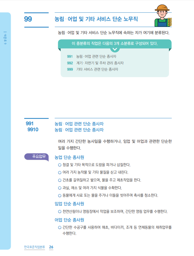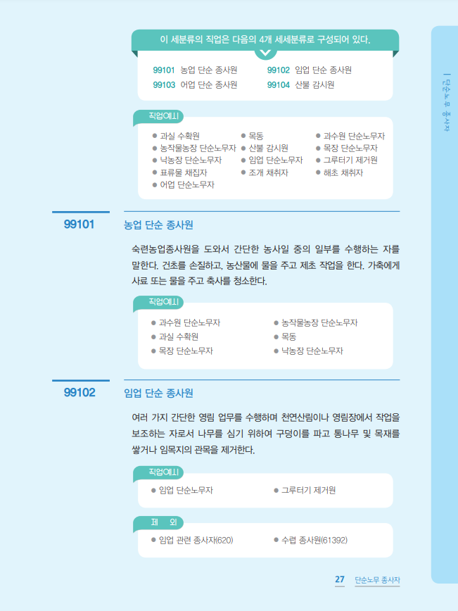 99 농림·어업 및 기타 서비스 단순 노무직