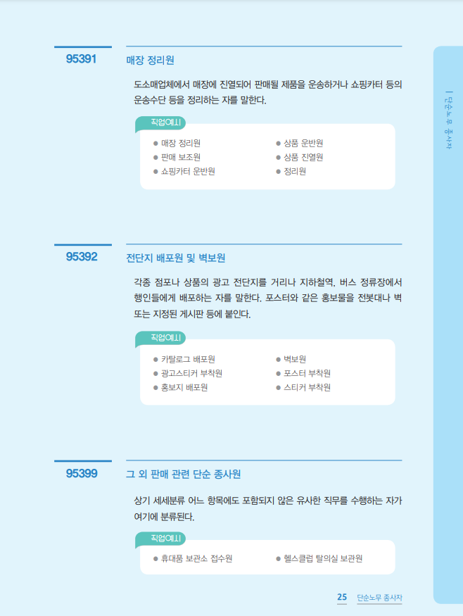 95 가사·음식 및 판매 관련 단순 노무직
