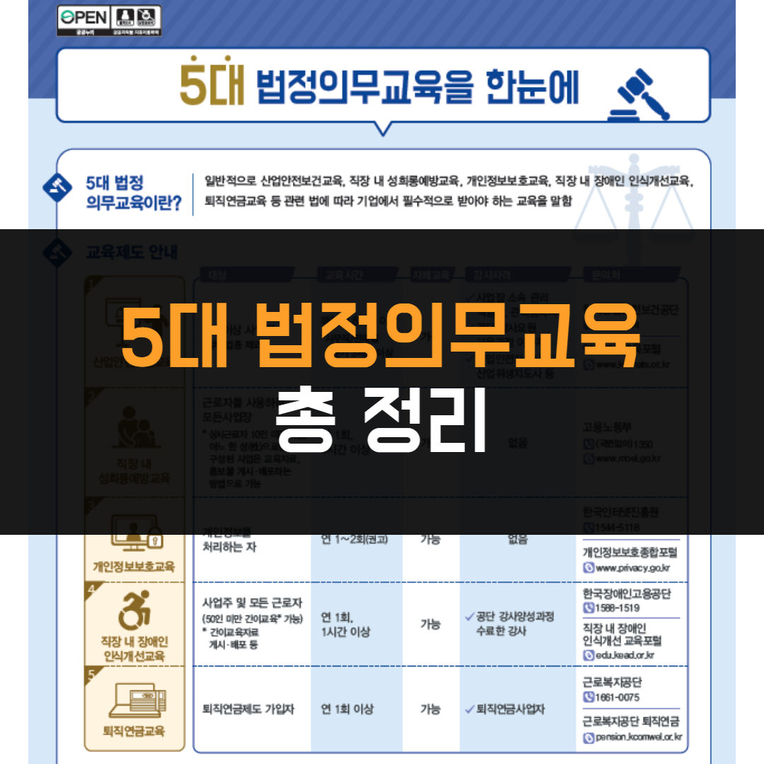 5대 법정의무교육 총정리 : 대상, 교육시간, 자체교육, 교육자료 등