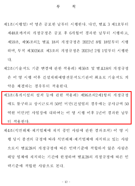 50인 이상/미만과 관련하여서는 시행령 "부칙" 에서 확인가능합니다.