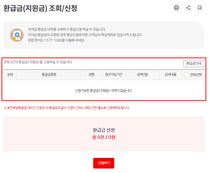 환급금이 확인된다면 위의 화면에서 신청하시면 됩니다.
