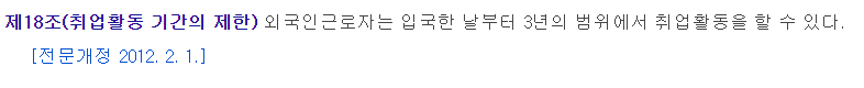 「외국인근로자의 고용 등에 관한 법률」 제18조(취업활동 기간의 제한)
