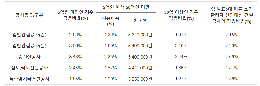 안전보건관리비 계상기준은 다음과 같습니다.