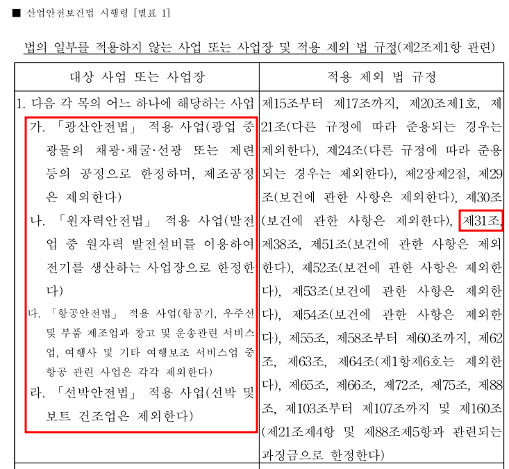 다음의 업종은 교육을 실시하지 않으셔도 됩니다.