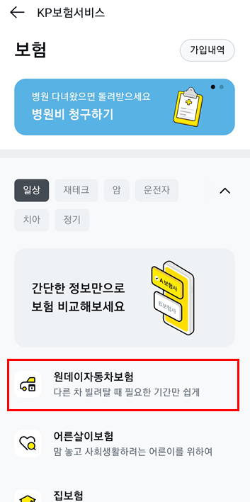- 원데이자동차보험 보험 가입방법