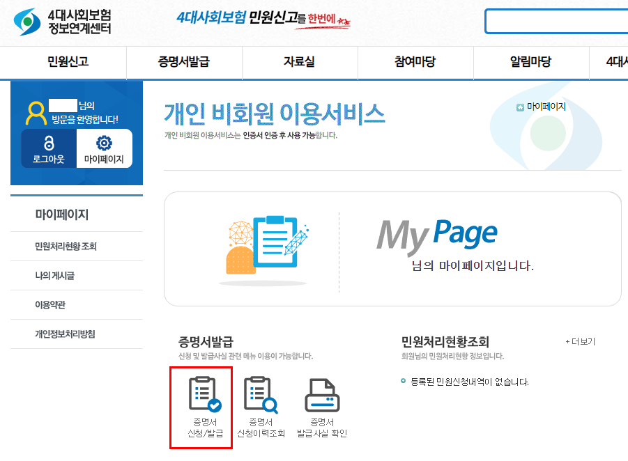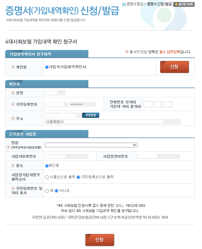 "4대보험 가입여부" 확인 방법 및 "4대보험 가입내역 증명서" 출력 방법