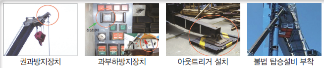 ·권과방지장치, 과부하방지장치, 훅 해지장치 등
