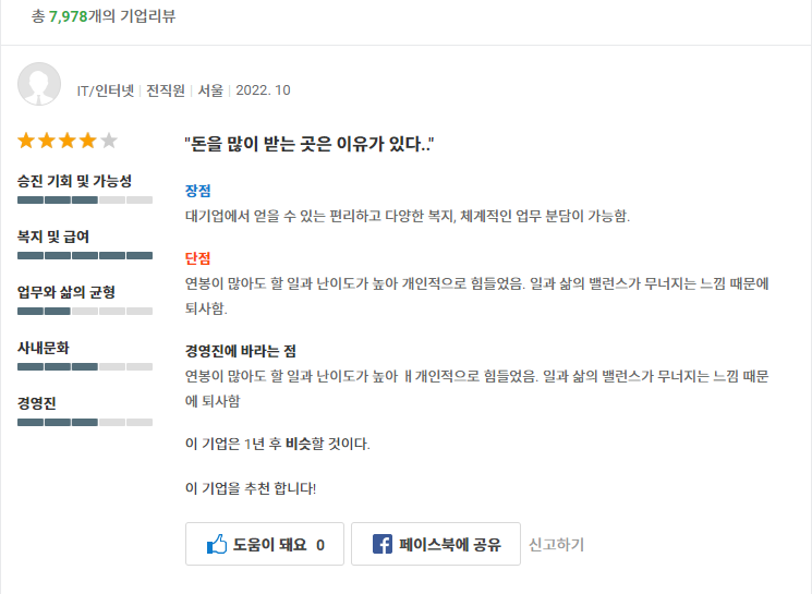 모든 직장은 본인이 겪어봐야 알 수 있는 것 같습니다. 연봉이 높으면 그만한 이유가 있을 수도 있습니다. 해당 정보는 참고만 해주시기 바랍니다.