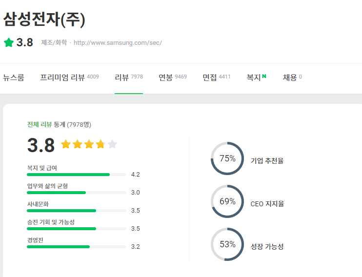 다음은 삼성전자 현직자들의 리뷰입니다.