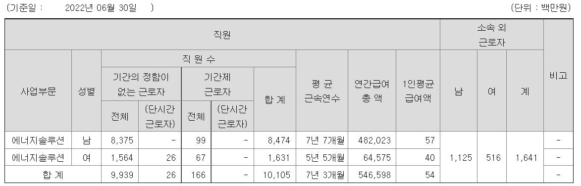 LG에너지솔루션 연봉, 직원수 정보