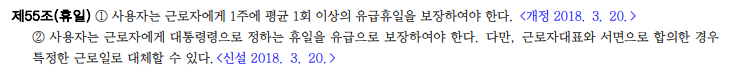 근로기준법 제55조(휴일) ① 사용자는 근로자에게 1주에 평균 1회 이상의 유급휴일을 보장하여야 한다.