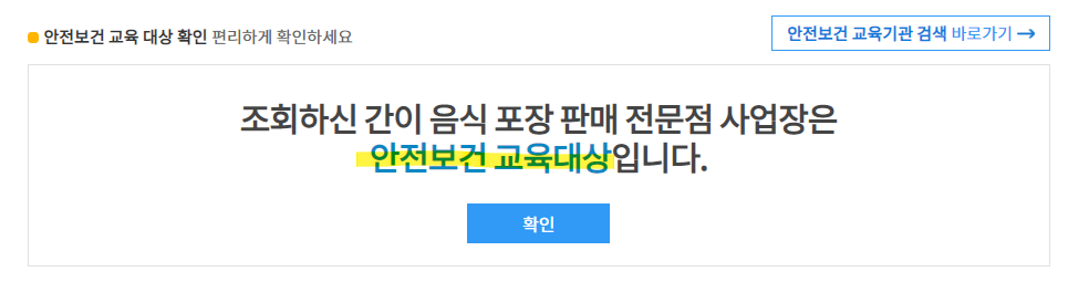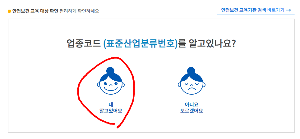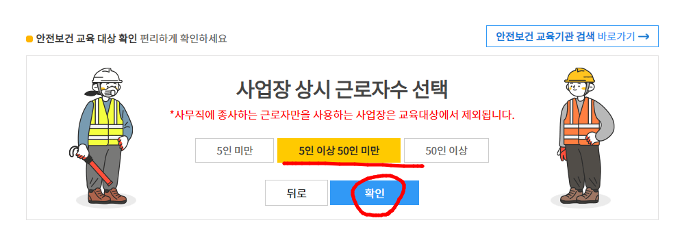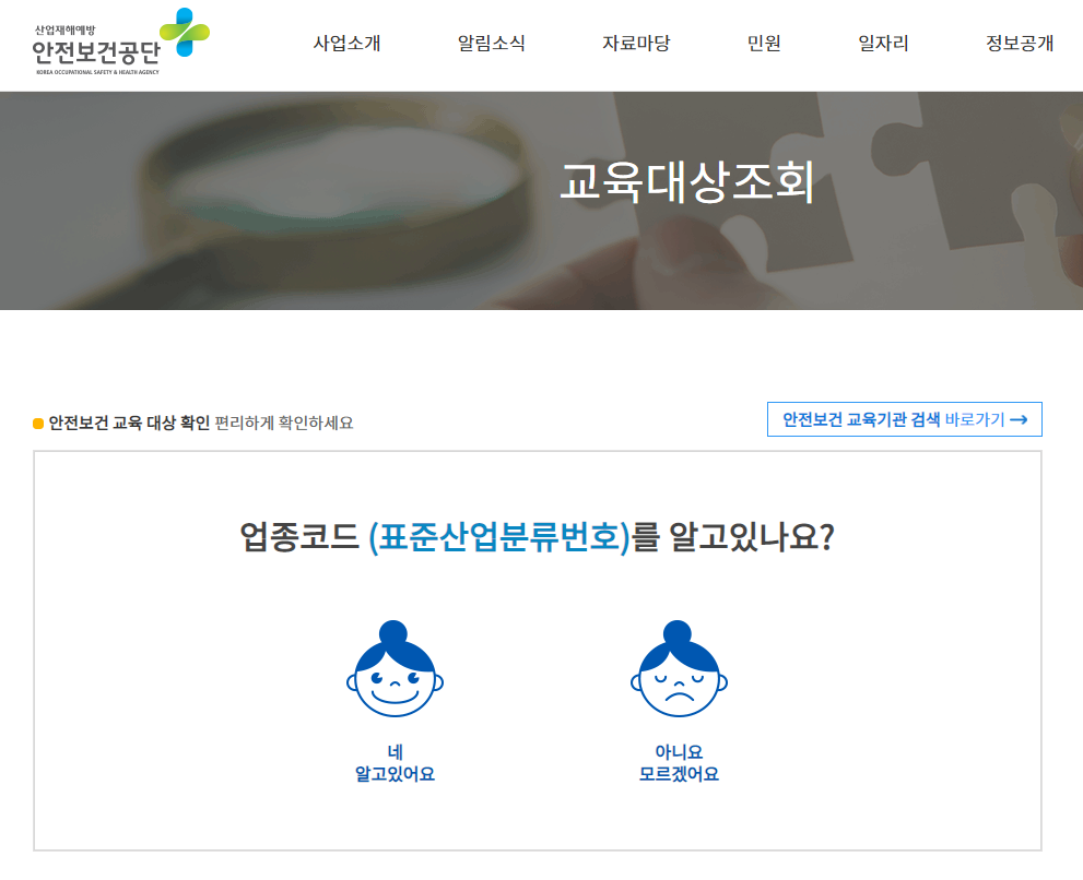사이트를 통해 안전보건교육 대상 사업장인지, 아닌지 확인할 수 있습니다.