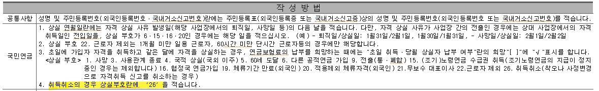 국민연금 취득/상실취소는 '취득/상실 신고서'를 작성하여 제출합니다.