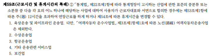 더불어, 다음의 특례제외업종(총 5개 업종)은 근로자대표와 합의시 연장근로에 한도가 없을 수 있습니다.