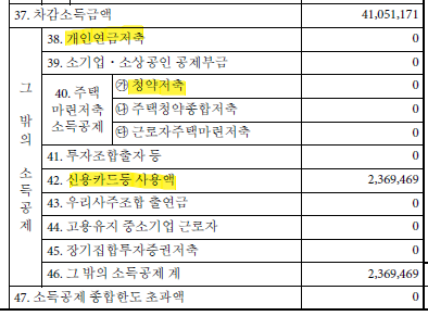 그 밖의 소득공제입니다. 흔하게 공제받을 수 있는 항목이 '개인연금저축, 주택청약저축, 신용카드' 가 있습니다.