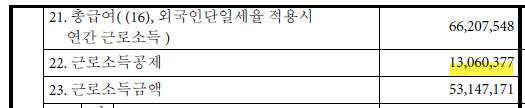 위 금액을 공제하고 근로소득금액은 53,147,171원이 됩니다.