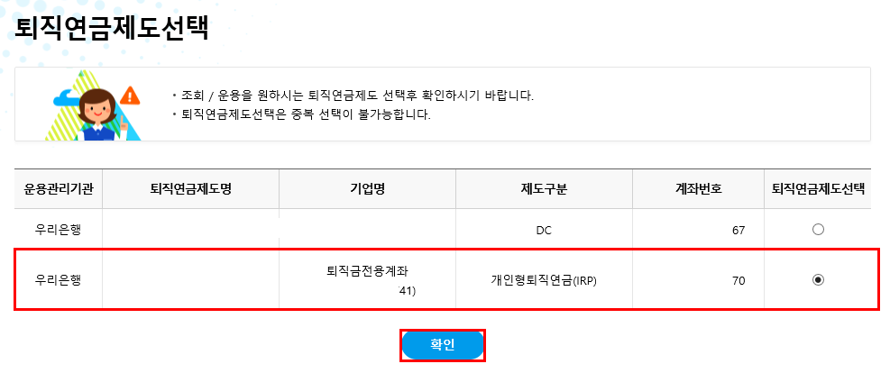 저는 우리은행 IRP계좌를 보유하고 있기 때문에, 우리은행 기준으로 설명을 드리지만,