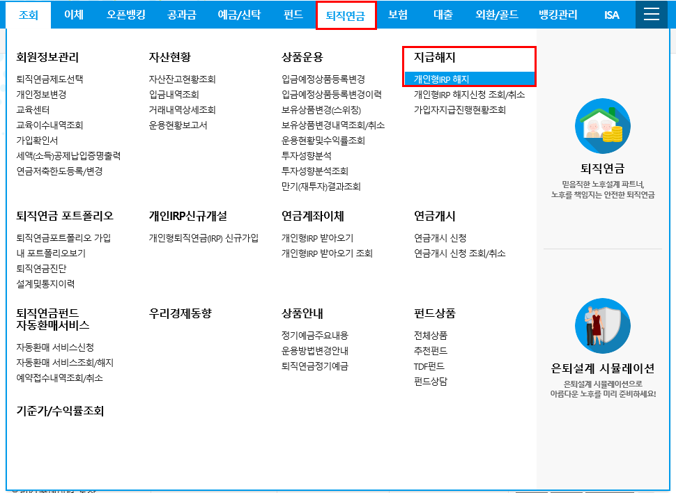 (퇴직연금 수령) 우리은행 IRP 계좌 해지방법