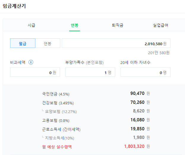 위 금액 공제후 1,801,310원을 실수령할 수 있습니다.