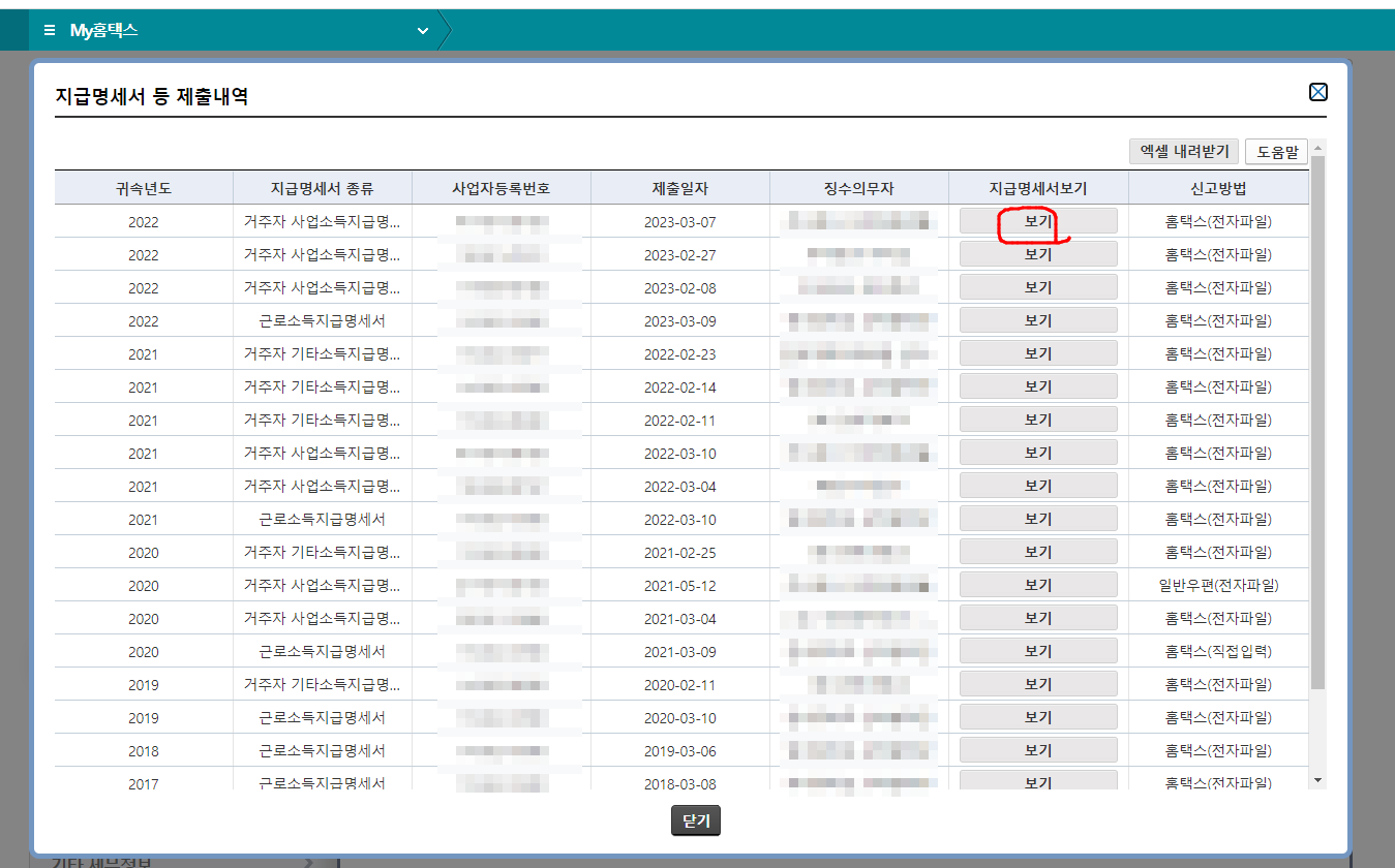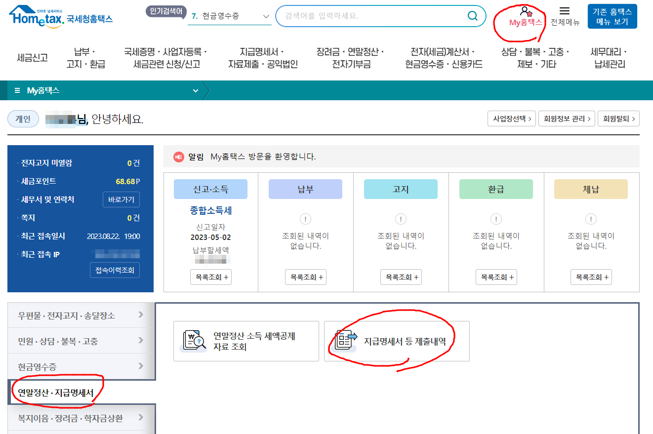 ③ My홈택스 → 연말정산·지급명세서 → 지급명세서 등 제출내역