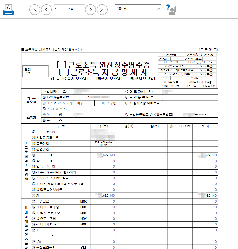 다음과 같이 원천징수영수증을 확인할 수 있습니다.