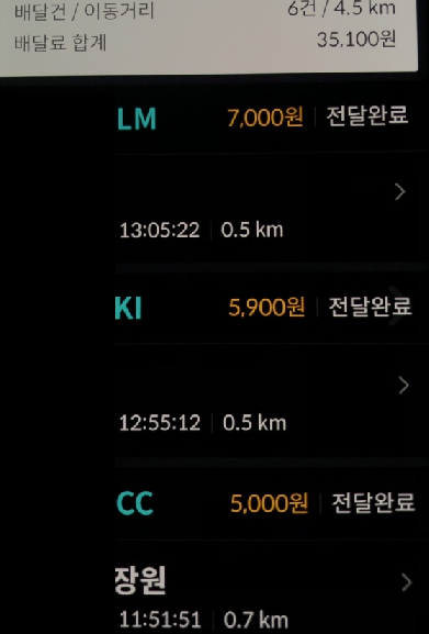 하지만, 점심, 저녁피크타임 즉, 가장 배달이 많은 시간에는 5,000~8,000원 정도의 단가로 배차가 지정됩니다.