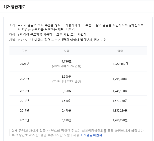 1주일 주40시간을 일했을 때, 418,560원 이상은 받으셔야 최저임금은 받는 것 입니다.