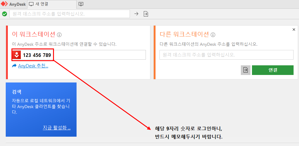 원격제어를 받는 컴퓨터(회사 컴퓨터)의 고유번호입니다. 반드시 메모해두시기 바랍니다.