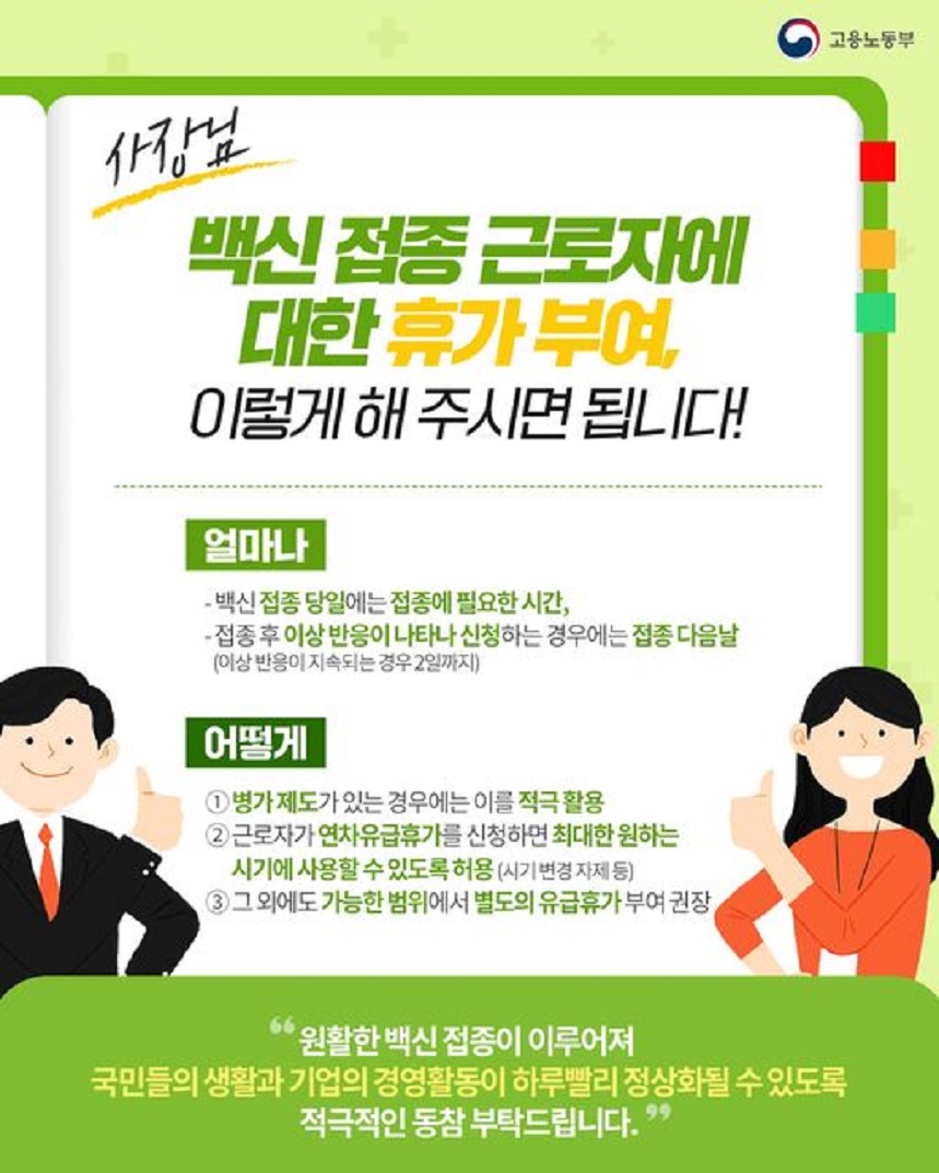 코로나 백신 휴가 사용할 수 있을까요? 유급일까요? 무급일까요?