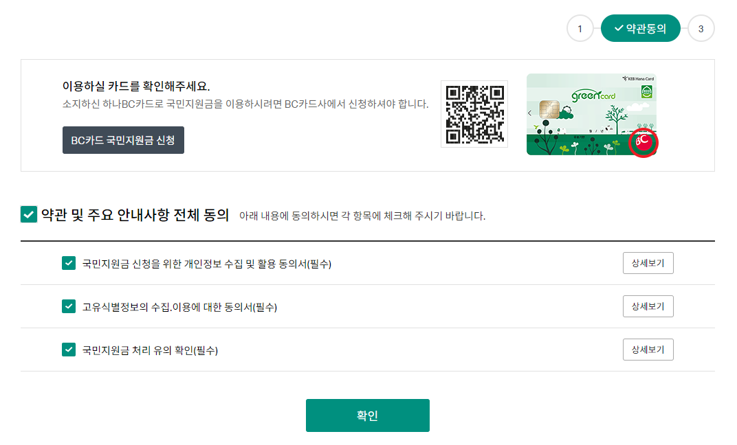 위와 같이 개인정보, 고유식별정보, 국민지원금 처리 유의 확인에 대해 동의가 필요합니다.